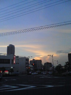 夏の残り香のような風に、オレンジの斜陽とブルーの空が描くコントラスト。それぞれの目的に向かい流れていく車の群れは幾分急ぎ足にも見えます。