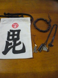 孫子寺で購入した『毘数珠』(略して毘’珠)、mayoyo君にもらった『毘ストラップ』(これはペア仕様になっているので、片割れを持っているmayoyo君とは義兄弟の契りを結ばねばなりません。桃園結義です、はい(*'-')。