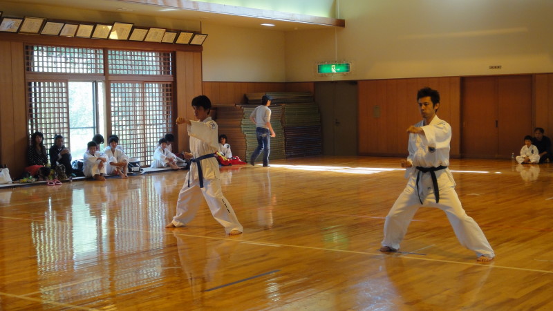 時間の関係上、大会の中に取り入れるのは中々難しいですが、この先も出来うる限り導入していこうと思います。 そして今回も最早恒例となりつつある演武を行いました。今回は約束組手、型、組手と若干多目に行いましたが、少しでも喜んで頂ければと思っております。