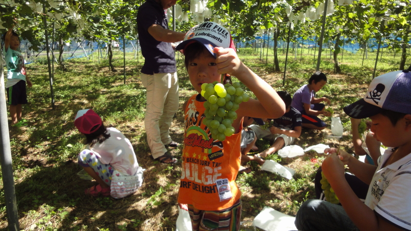 そうこうして午前練習も終わり!帰って昼食を頂き合宿所を後にしました。 そして合宿最後の思い出にブドウ狩りに行きました!