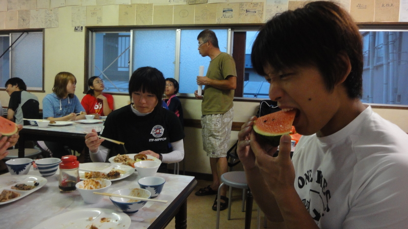 信州大学生も参加していたので初めて会う人と練習するのは刺激がありますね。ミットをしたり組手をしたりと3・4時間が経過。練習後は恒例の水鉄砲合戦!大将となり無鉄砲に突入し撃破されました(´・ω・`) 合宿所にチェックイン、増築に増築を重ねた迷路の様な建物で部屋には昭和なTVがお出迎えしてくれました。レトロながらもちゃんと見る事が出来ましたyo。