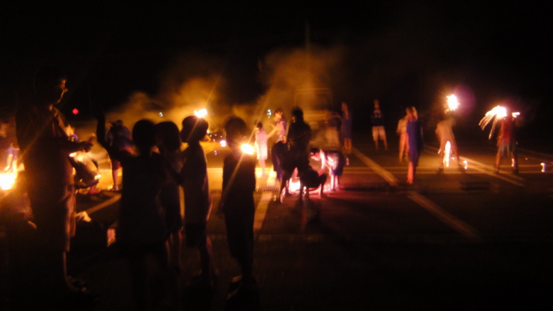 早々に食べ終わりお風呂に入りに行く事にしました。指導員は”お宿陣屋”というグレードの高い方?の浴場が使えるという事でBrightさんと一緒に疲れを取りました。 そして今回はついに花火が出来る天候に恵まれました!合宿で花火が出来ないジンクスも今年をもって終了です。遠くには花火大会の大輪の花火。夏の終わりに相応しい情景でした。