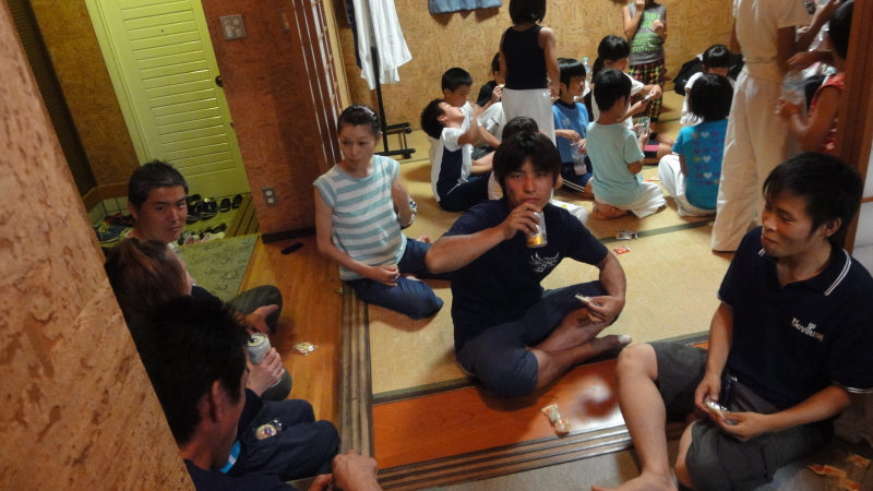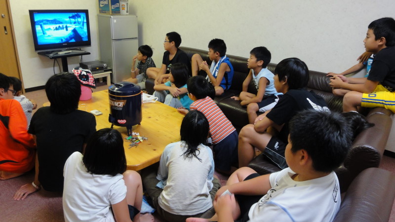 合宿所に戻ると子ども達はTVで放映していたワンピースに夢中です。子どもにも大人にも人気ですねワンピースはヽ(´ー`)ノ…僕は良く知りませんが(´ε`;)