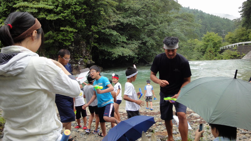 最初は真面目に水鉄砲の応酬をしておりましたが、痺れを切らして水鉄砲そっちのけで取っ組み合いをして(・_・;)何とか上杉軍の勝利!!!