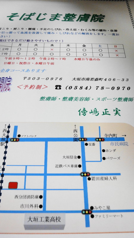 大垣市郭町2丁目19番地 TEL 0584-47-8011営業時間 9:00~17:00 不定休 ( 完全予約制 出張・時間外可 )