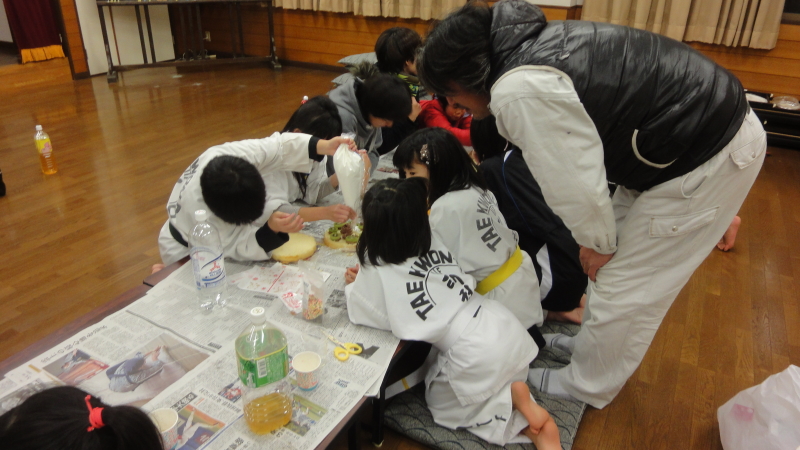 練習する気満々で入ったのですが、中では子ども達がケーキ作りの真っ最中でした。今日は練習兼クリスマスパーティーの日だった模様です☆彡