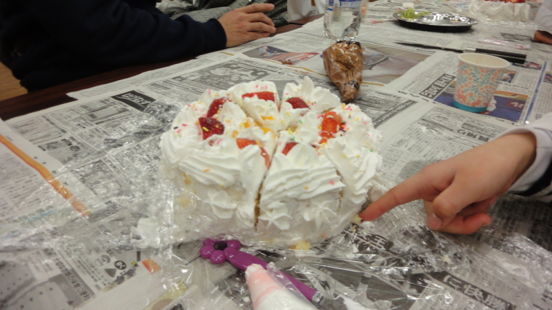 チーム対抗でケーキのデコレーティング対決中。女の子が中心になって綺麗に盛り付けていました。僕は温かいシチューを御馳走になりながら観戦。出来上がった一日早いクリスマスケーキに舌鼓を打ちましたヽ(=´▽`=)ノ
