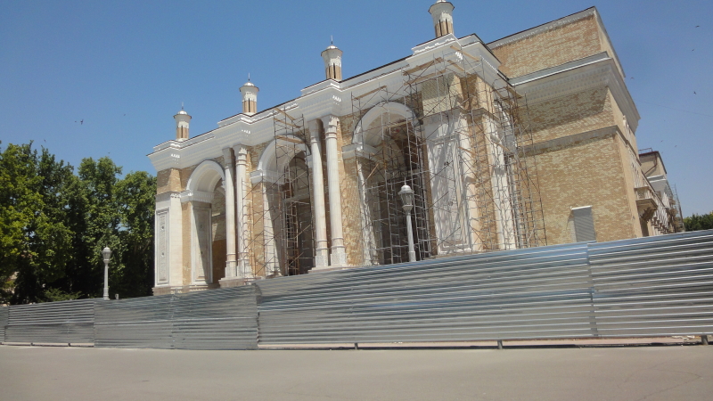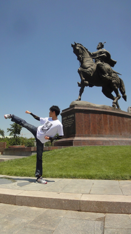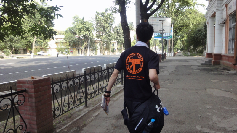 そしてここらで一度練習しておきたいとレ・グランドホテル横の広場で練習。型を一通り通して組手も軽く行いました。タシケントは日が高く8時以降にならないと暗くならないので7時頃から小一時間程練習し帰宅。