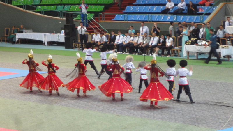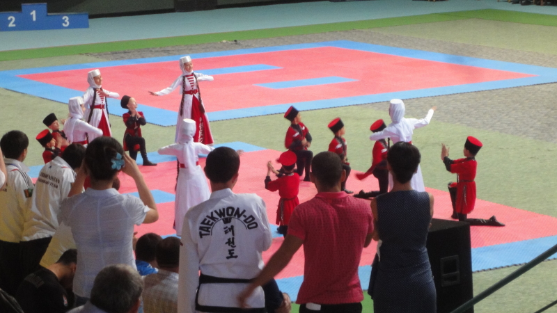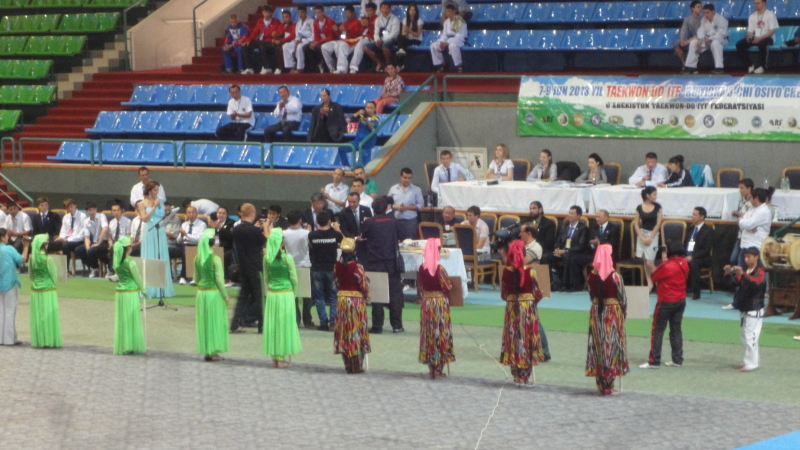 そしてオープニングセレモニーを鑑賞にアジア大会会場のTennis Court of Toshkentへ。沢山の民族的な踊りを見る事が出来ました。そして地元の有名な歌手なのでしょうか?の歌を堪能。