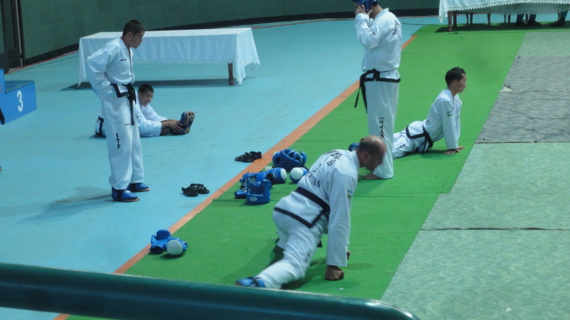 ジーンズ姿でリラックスして見ているとシニアの黒帯の選手が練習している姿が見えます。オカシイ…スケジュールでは今日はジュニアのみのはず…しかし深くは考えず請われるがままに写真撮影等しているとモルドバのイケメンが話し掛けて来ました。