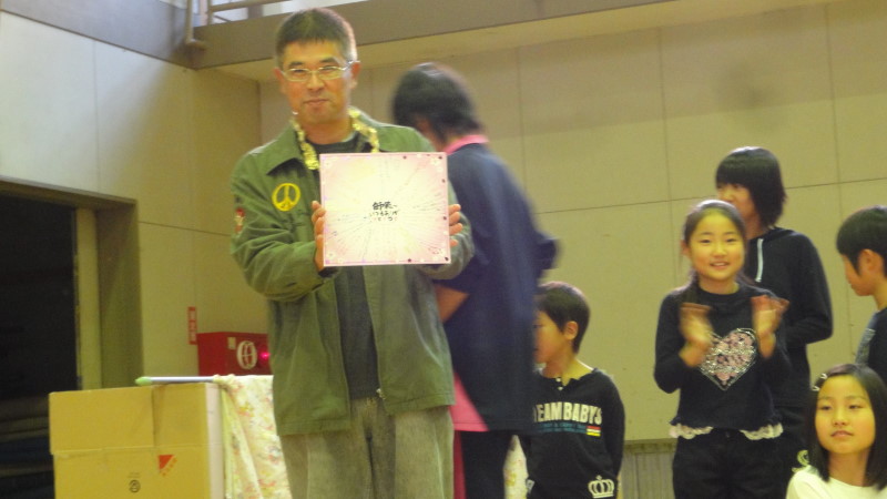 そこで子ども達にお手製のメダルと花束を頂き感謝感激で御座いました。色々な方とお話出来て楽しかったですが消防団の活動がある為中座する事に。