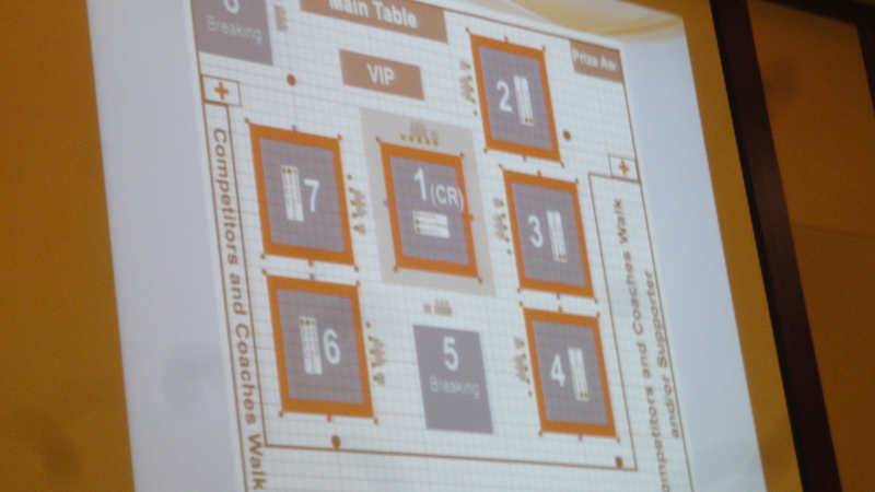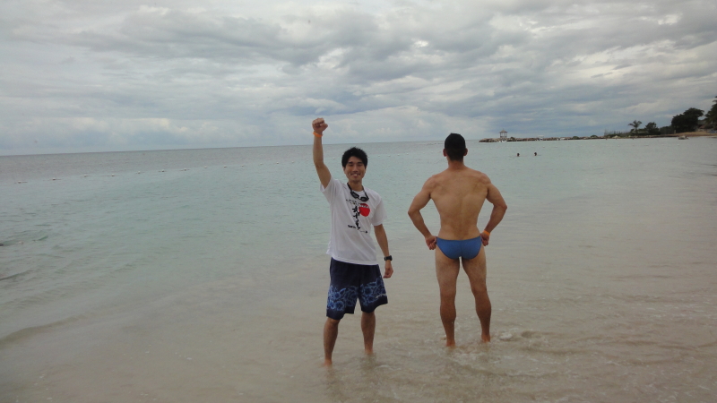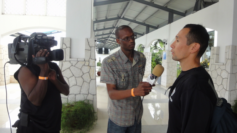 この日は午前中に選手計量があります。超過の心配はないのですが心配症なので朝食は抜いておく事にしました。少し遅目にコンベンションセンターへ行き、計量が始まるまでの間、型の練習に勤しむことにしました。しかししばらく練習していると朝食を抜いたせいで気分が優れなくなってきました。同じく朝食抜きで気分の悪くなったRen君と一緒にフルーツを調達に行く私(*_*; その後無事に計量も通過し、昼ご飯を思う存分に食べた後は何とジャマイカTV?から取材の依頼が!ヽ(´エ`)ノ英語での取材に流暢に答えるS師範、なんてCool!